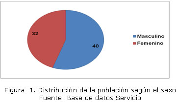 En la figura 1 y 2, se muestran la composición según sexo y edad de los pacientes estudiados, donde se encontró la existencia de 32 niñas y 40 niños y una mayor distribución de los pacientes en la edades entre 1 y 10 años de edad.